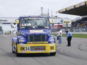 Škoda jen, že na rozdíl od Gerda se pohárový závod totálně nepovedl Davidu Vršeckému. Ten se po startu zařadil na třetí místo, ve druhém kole však v jedné ze zatáček probrzdil, udělal hodiny a propadl se na osmé místo. “V té chvíli jsem byl ještě celkem v klidu, nic nebylo ztraceno. Bohužel poté jsem se zahákl předními koly o Seilera a auto se stalo rázem neovladatelným. V rychlosti 160 km/h jsem se potkal s bariérou z pneumatik. Je to škoda, chtěl jsem čtyřicet bodů! Ale i takový je truckracing."